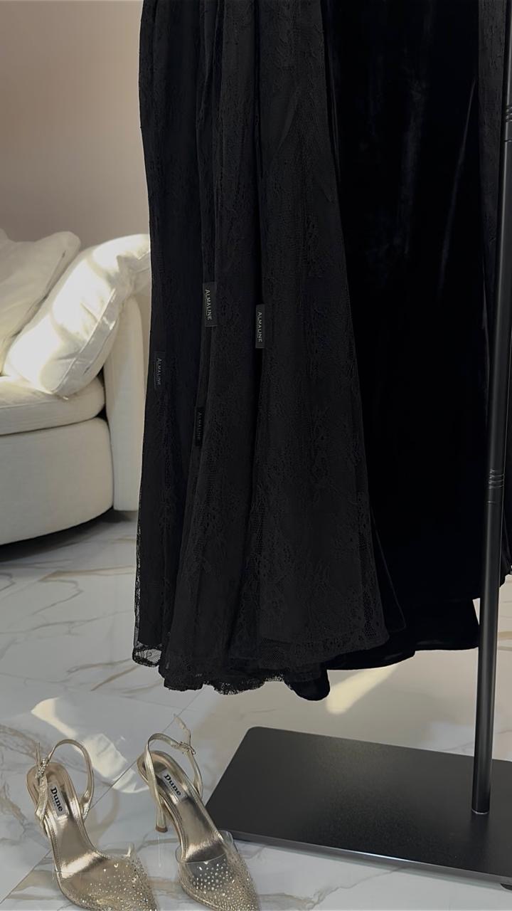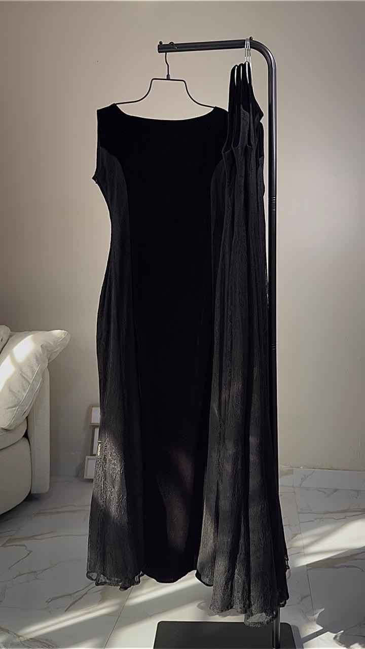 دريس جديد vip فستان دمج دانتيل فرنسي و مخمل كوري ( خفيف و مريح م ثقيل) بقصّة انثوية و راقية ، مناسب كفستان انيق بدون عباية و مناسب للعباية يخلّي اطلالتك بالعباية احلى و افخم يتنفذ مع اكمام او بدون يتنفذ خصيصا للمُرضع مع جرارات مخفية للرضاعة يتنفذ واسع و ساتر ومرييح او مخصر