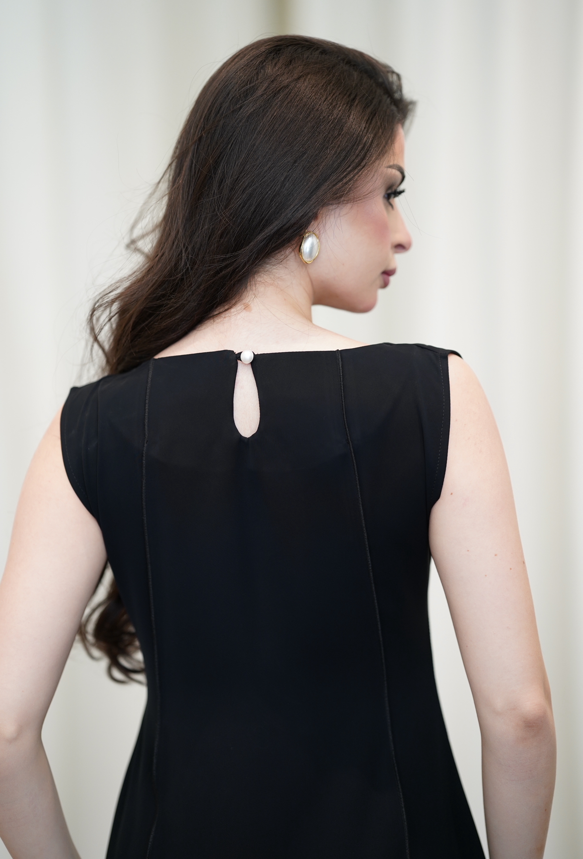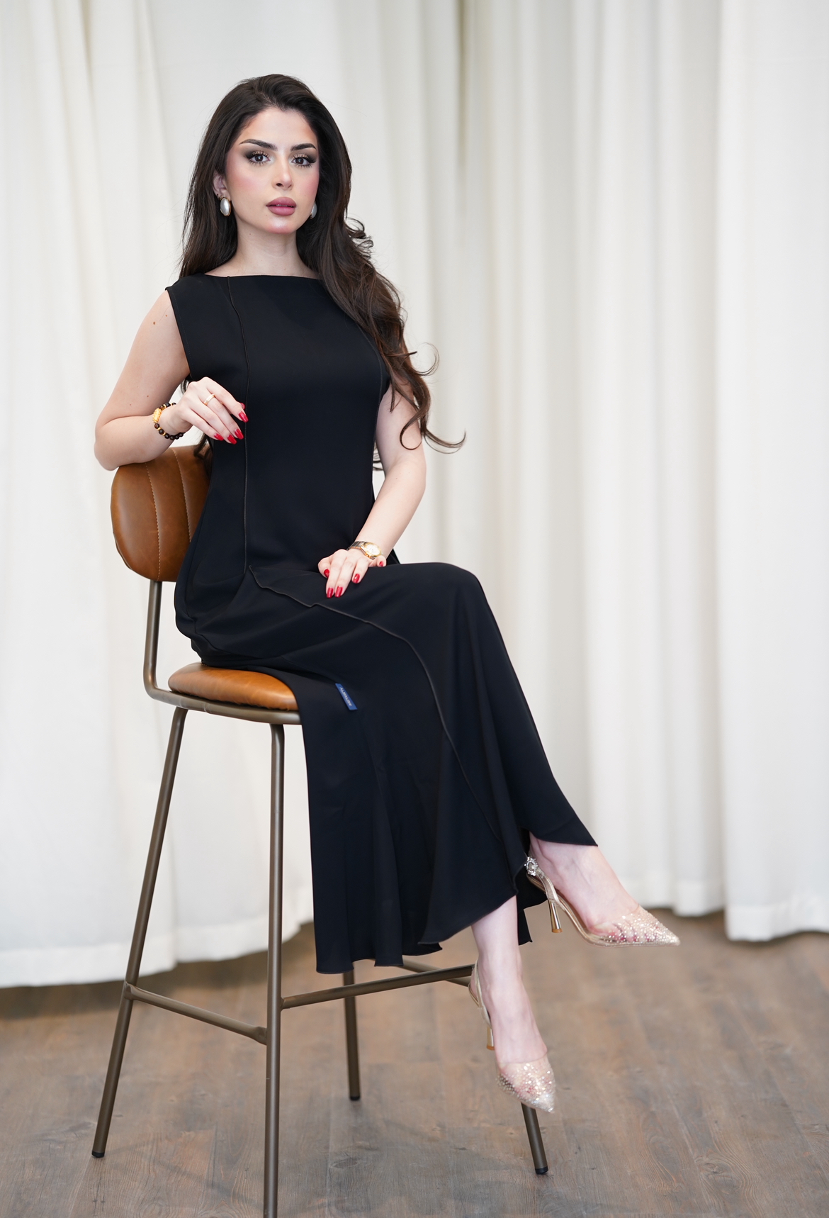 فستان بسيط او دريس تحت العباية ، تفصيلة راقية جدا، يمكن إضافه جيوب او جرار للمرضعه، فقط اكتبي في الملاحظات القطعة الي تلبسها الموديل خامة كريب اسود مطفي .