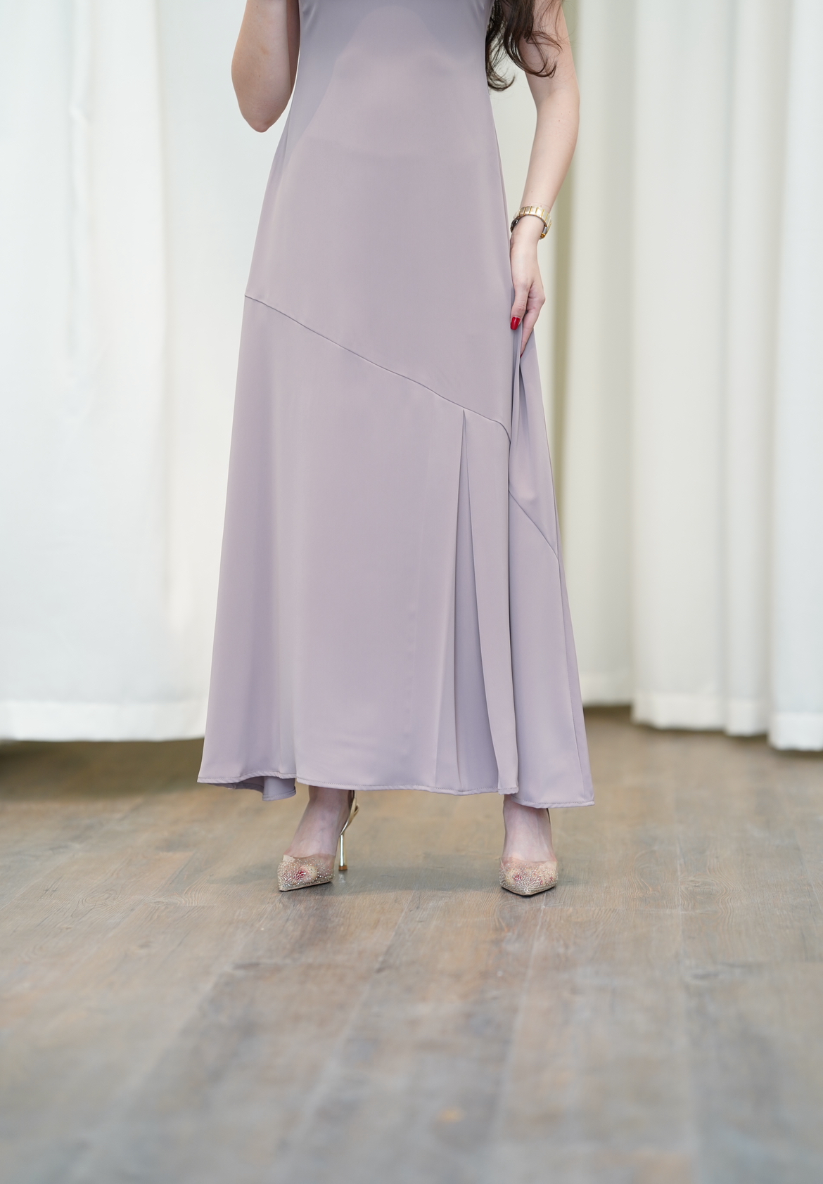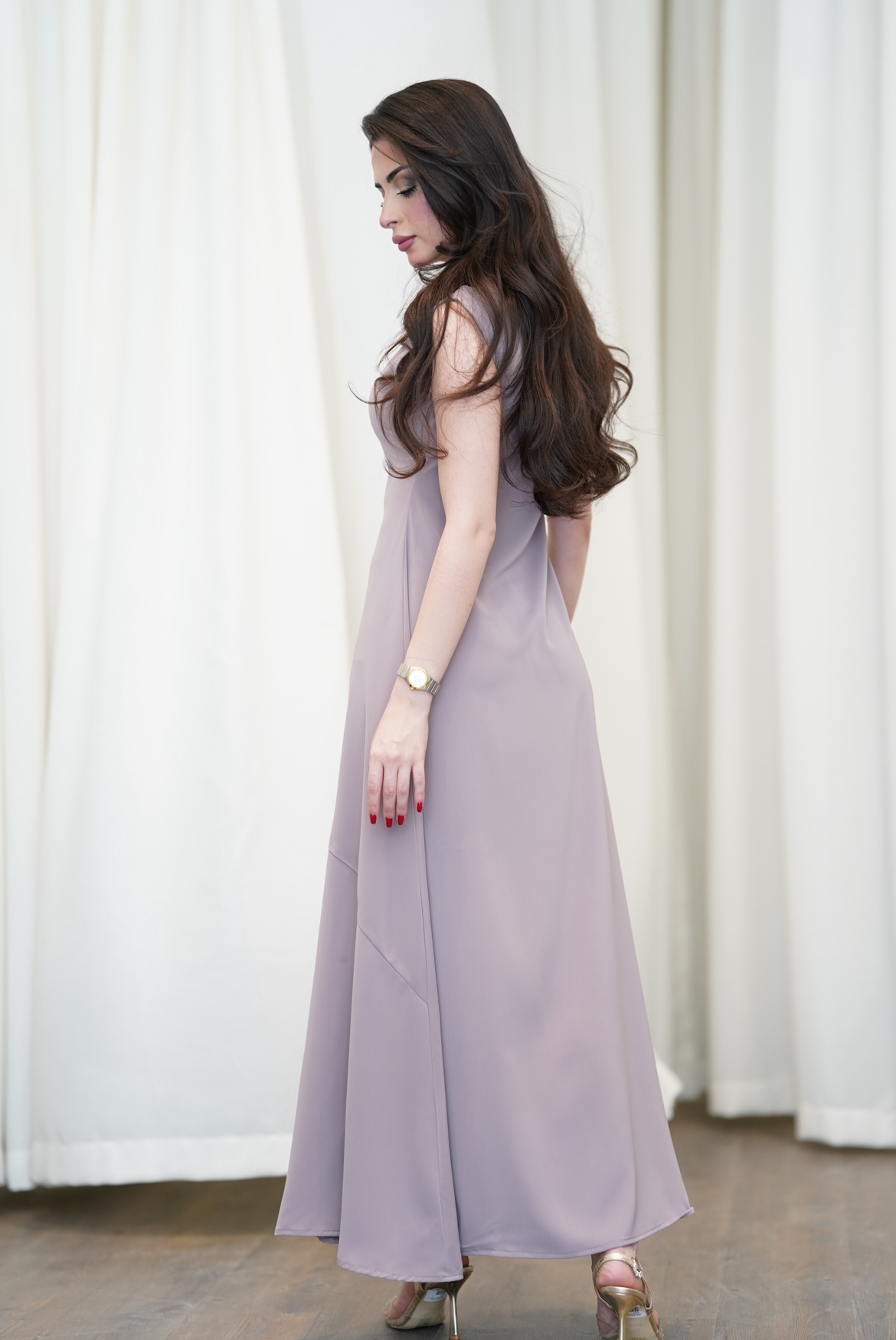 فستان انيق بسيط او دريس لتحت العبايه ، ممكن أضافه ازرار للمرضعه او جرار ، العارضه لابسه كريب نوود مطفي . اي إضافات تريديها اكتبي في الملاحظات